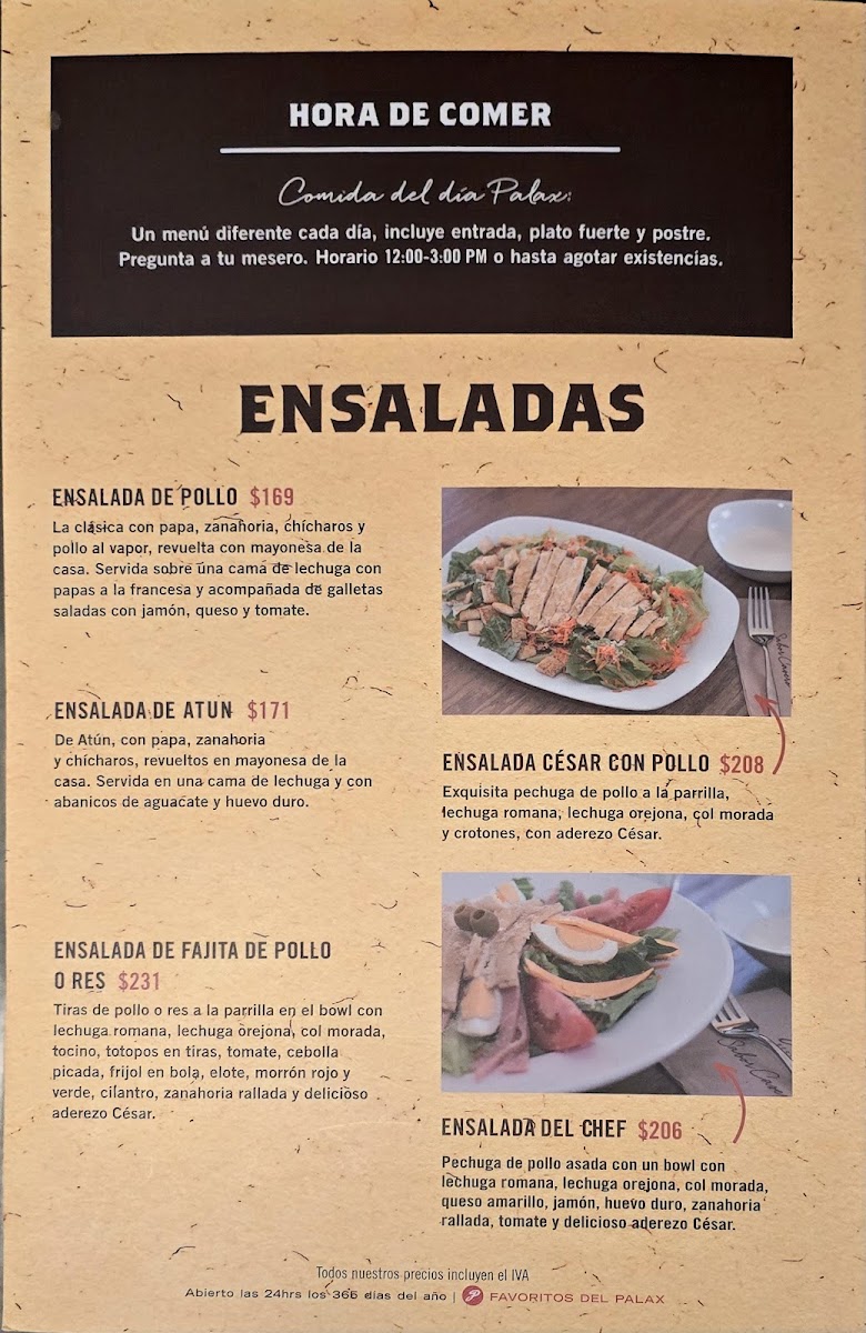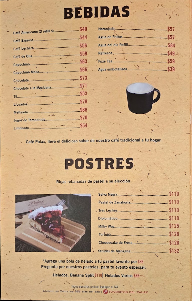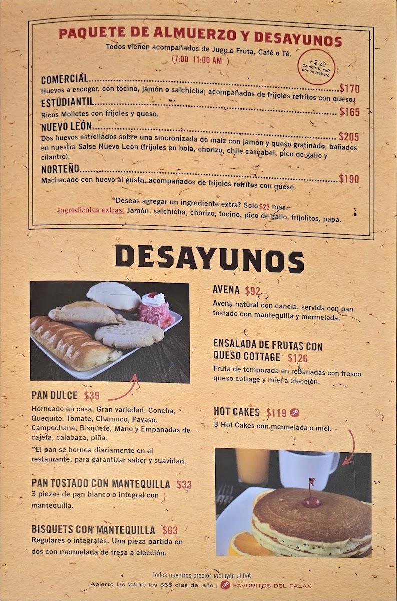 Welcome to Palax Obispado, a culinary gem nestled in Monterrey, Mexico. This vibrant restaurant serves a delightful array of traditional Mexican and American dishes, echoing the rich tapestry of local flavors. Indulge in their Filete A La Veracruzana, a succulent fillet simmered with fresh vegetables and a zesty tomato sauce, or savor the unique Cocktail De Camarón, crafted from a cherished house recipe. For those preferring lighter fare, the Ensalada Cesar Con Pollo offers a satisfying blend of grilled chicken and crisp romaine. Guest reviews highlight the friendly, attentive service and the restaurant's commitment to quality. Many diners appreciate the availability of English menus, which enhances accessibility for international visitors. The inviting atmosphere, paired with favorable pricing, makes Palax Obispado a must-visit destination for anyone seeking a delicious meal in Monterrey.